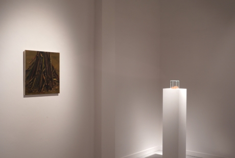 The work Phantom introduces the exhibition, planting the rhizome of meaning into the body of the display. A mirror stands before us, smashed into hundreds of pieces, which the artist has painstakingly collected and reassembled. It emerges as a symbol of history – always a part of a whole and in itself a sum of its parts. It is complete, and at the same time an impossible puzzle. Occurred and still happening. The act of reflecting (in oneself, in a painting, in a mirror) is composing oneself, always unfolding anew, here and now.