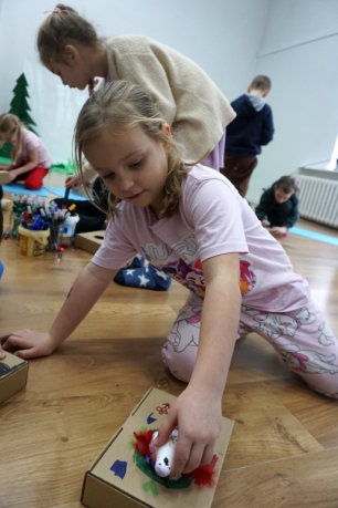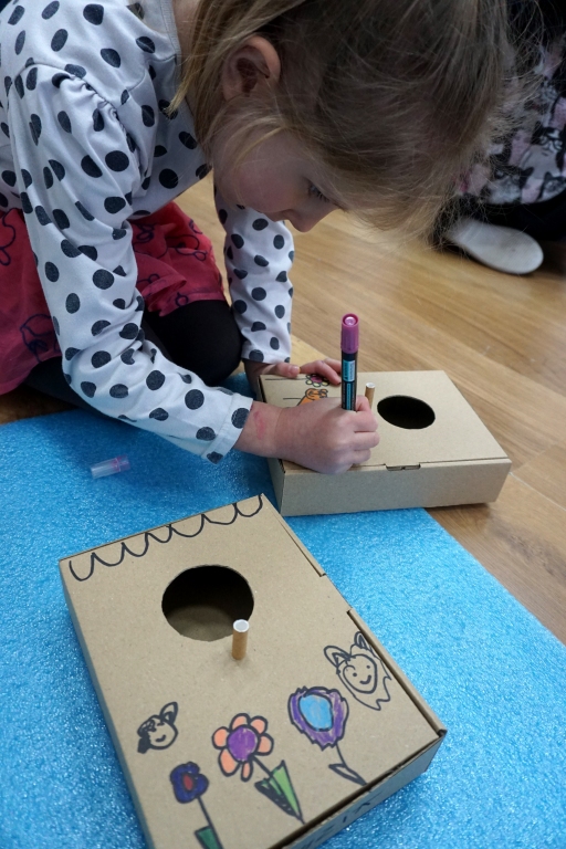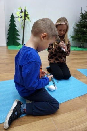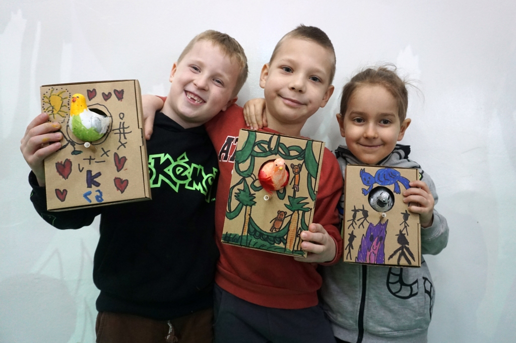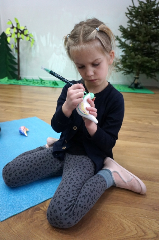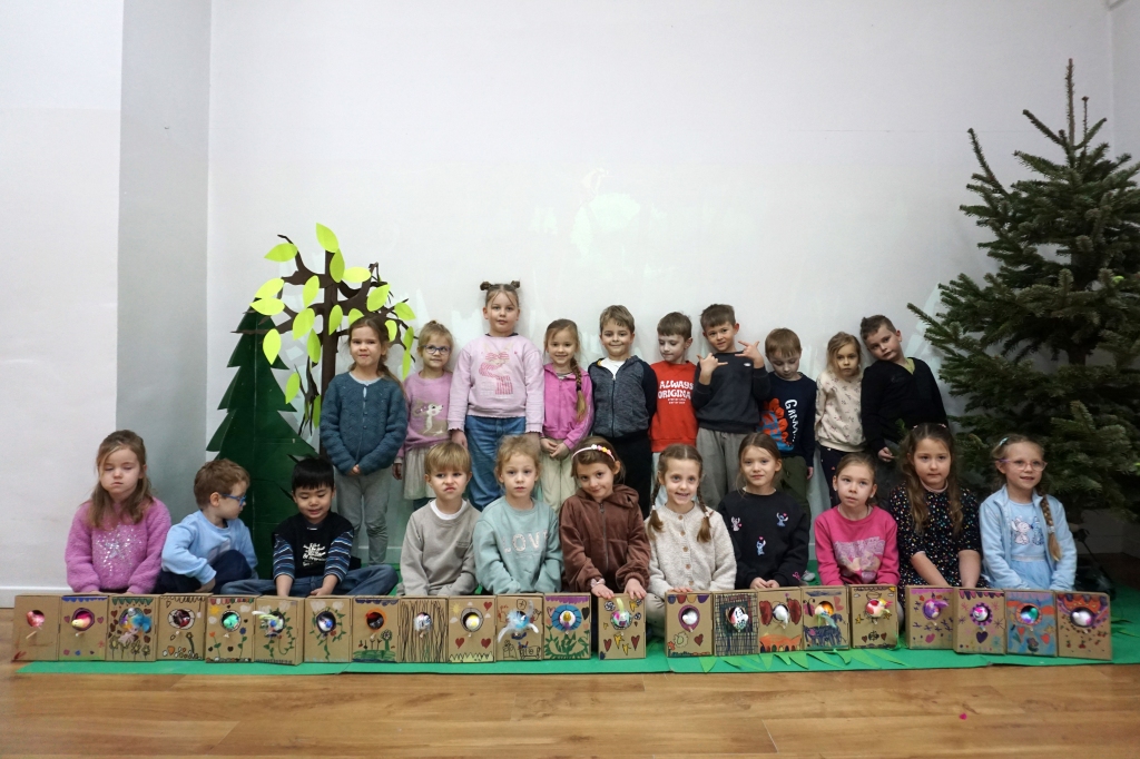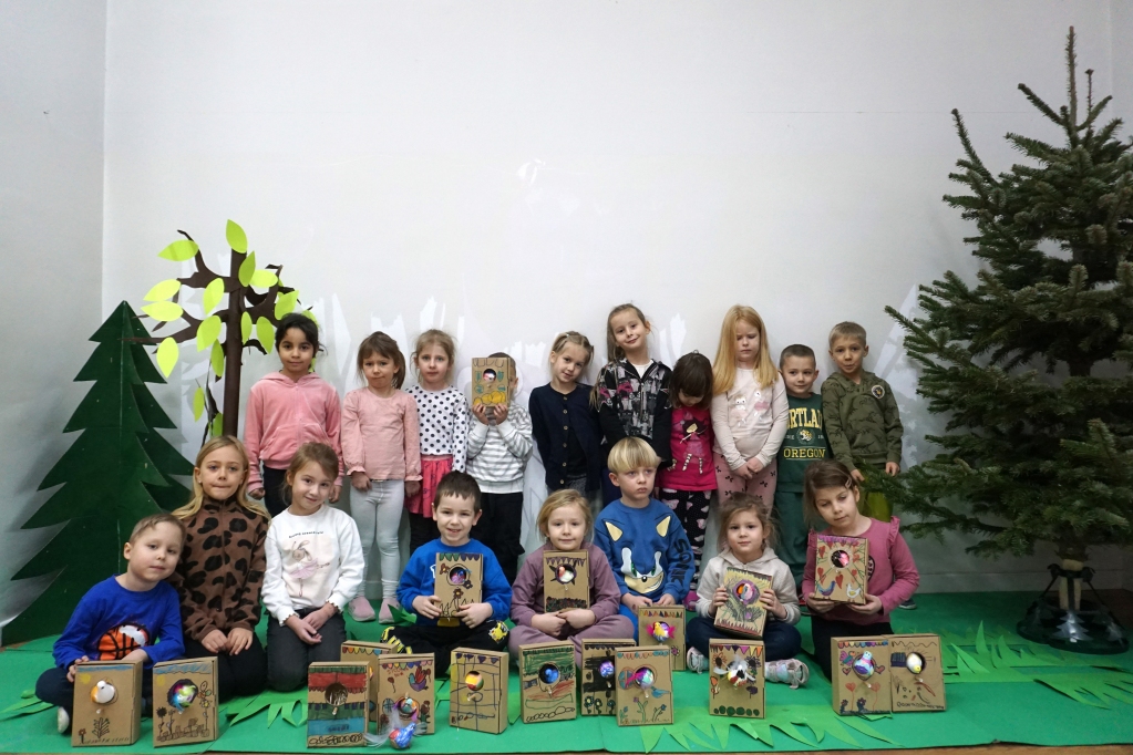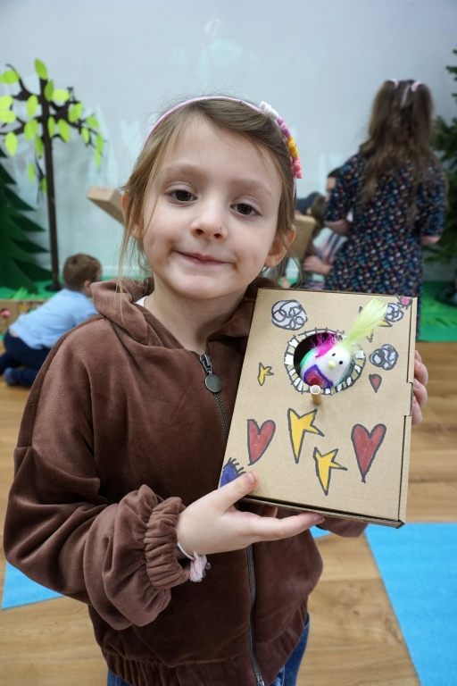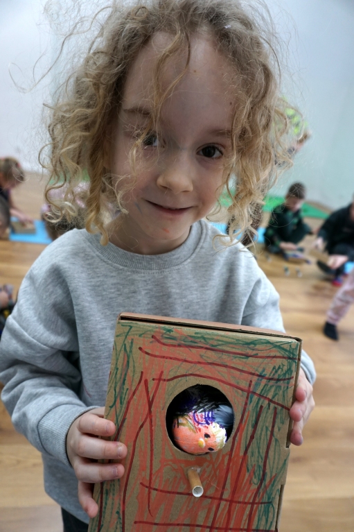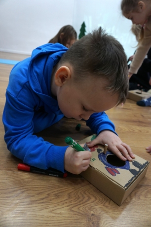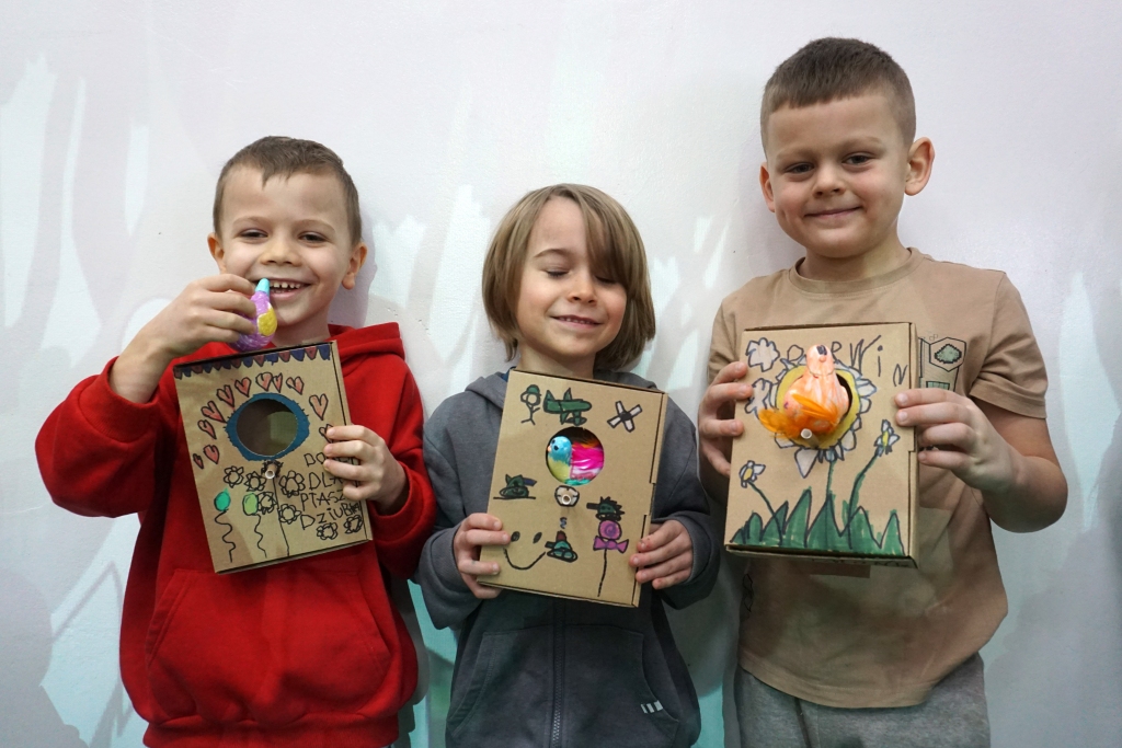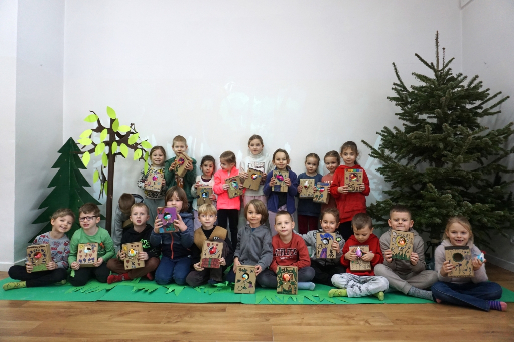 W dniach 12-15.01.2026 odbyły się już trzecie warsztaty SZTUKO(S)TWORY z ciekawskim stworkiem Florkiem. Dzieci wraz z nim podziwiały piękno lasu i ptaków. Zobaczyły też, że każdy ptak jest inny, ma inną wielkość i kolor. Poznały nazwy niektórych ptaków takich jak: gawron, sroka, gil. Następnie pokolorowały swoje styropianowe ptaszki, doklejając im piórka. Pod koniec zajęć każdy ptaszek otrzymał domek-budkę lęgową. W tej edycji SZTUKO(S)TWORY inspirują się fauną, czyli światem zwierząt.