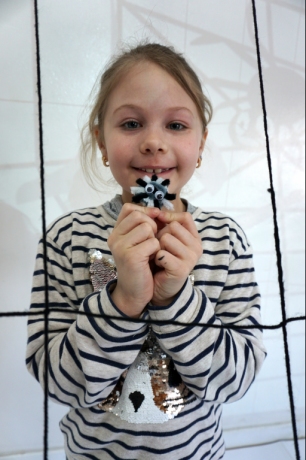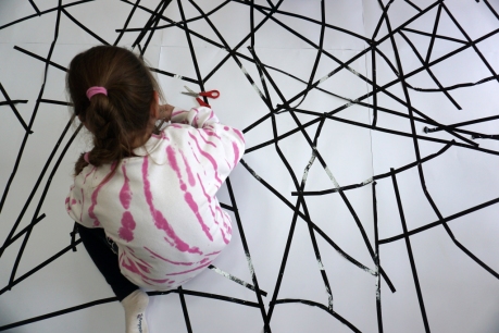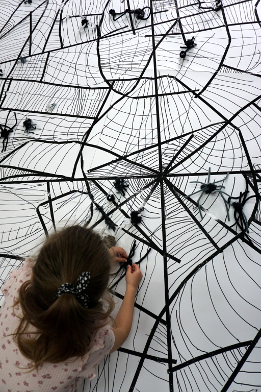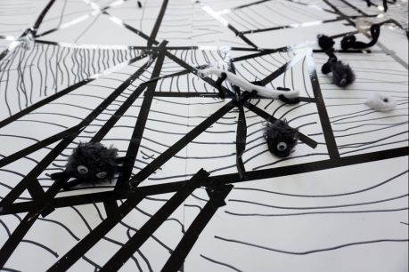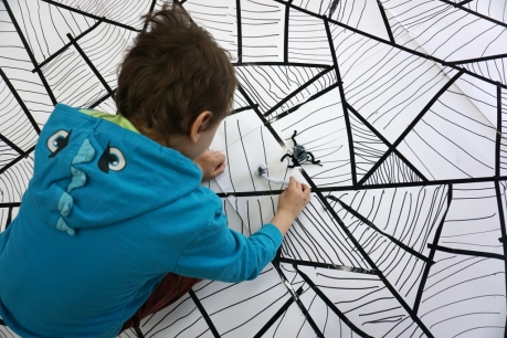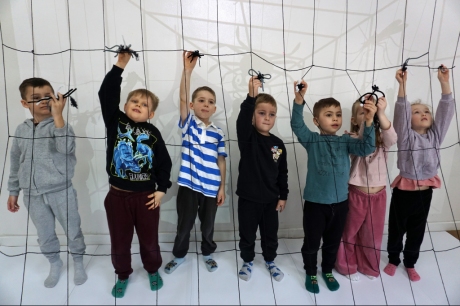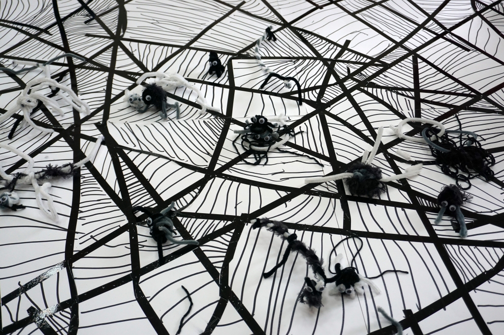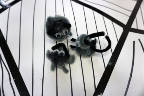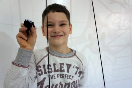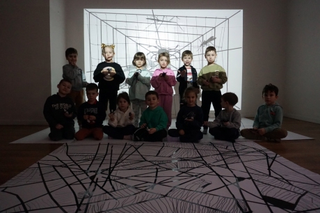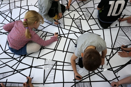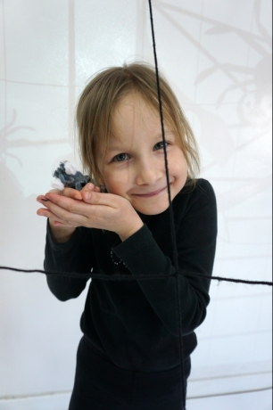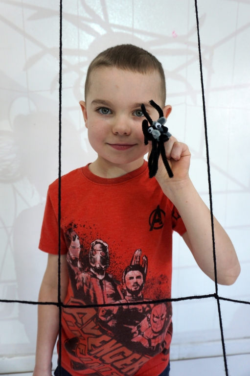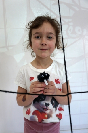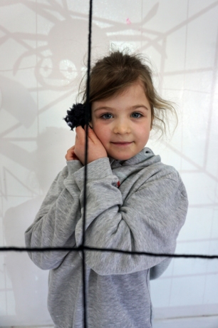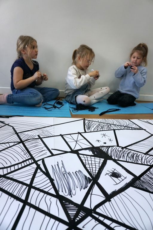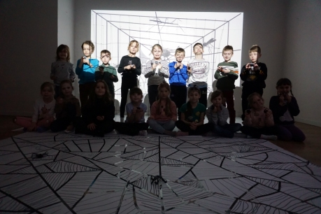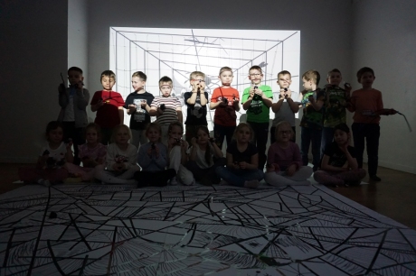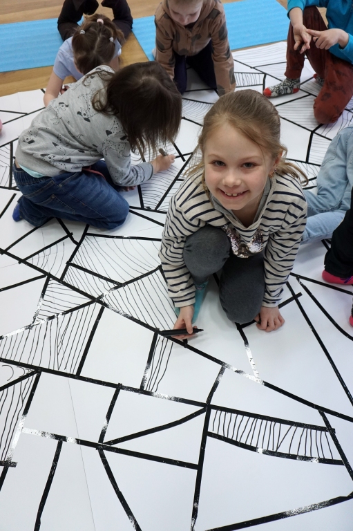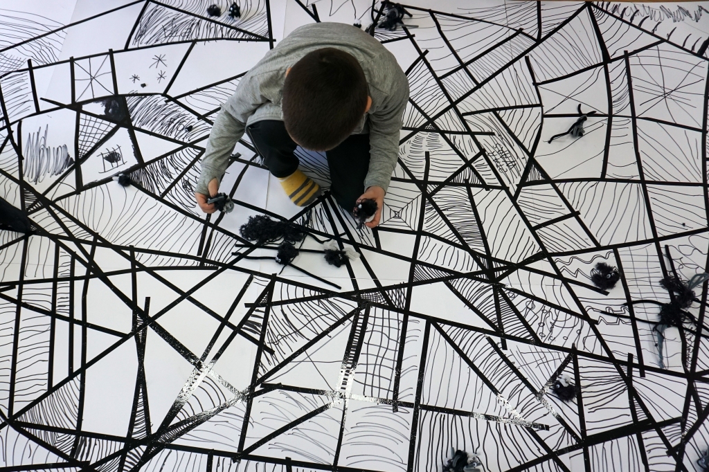 W dniach 9-12.03.2026 odbyły się pierwsze w II cyklu warsztaty SZTUKO(S)TWORY z ciekawskim stworkiem Florkiem. Dzieci wraz z nim szukały linii w przestrzeni lasu. Zobaczyły, że z linii zrobiona jest pajęczyna i elementy owadów: odnóża, czułki. Dzieci na dużej kartce papieru z taśmy klejącej stworzyły dużą pajęczynę. Następnie z drucików kreatywnych i wełny wykonały swoje wymyślone owady/mieszkańcy pajęczyny. W tej edycji SZTUKO(S)TWORY inspirują się fauną, czyli światem zwierząt.
