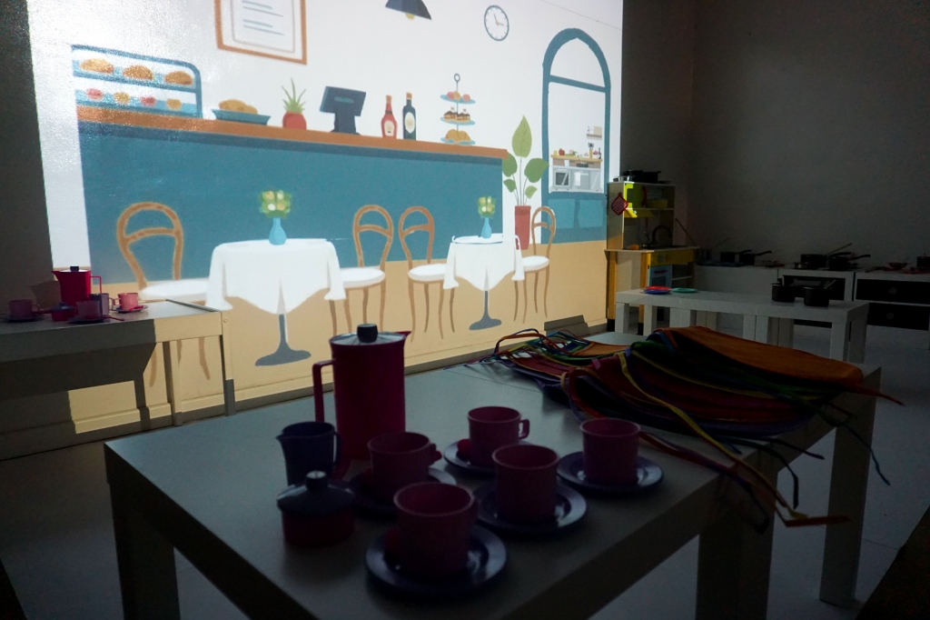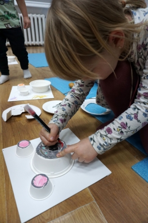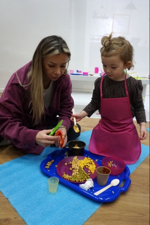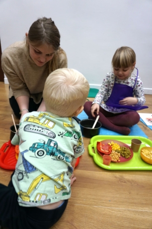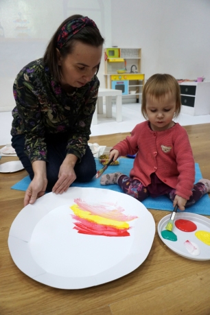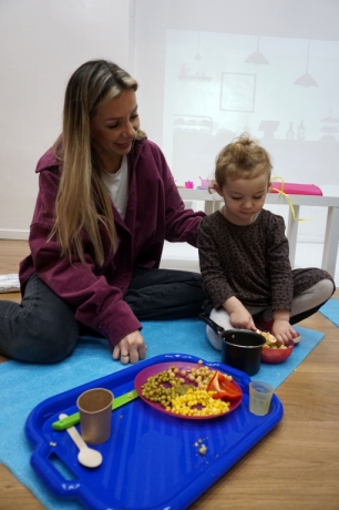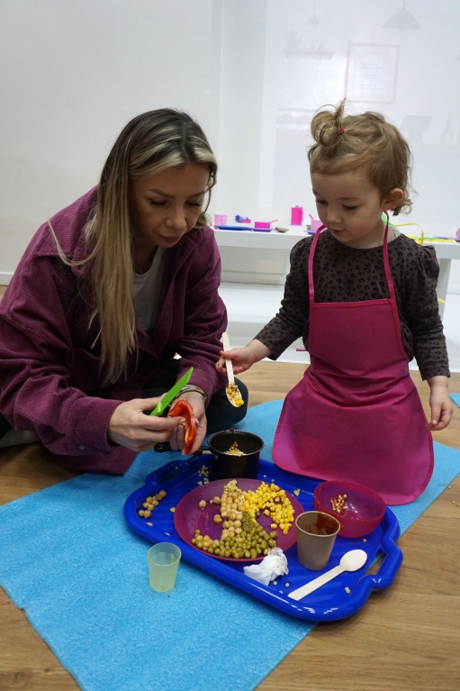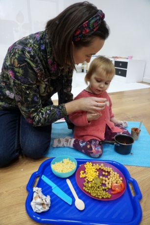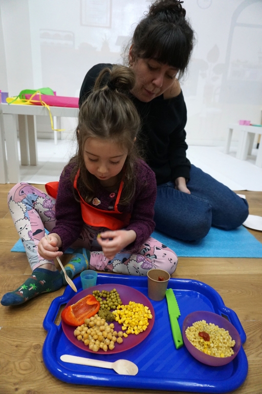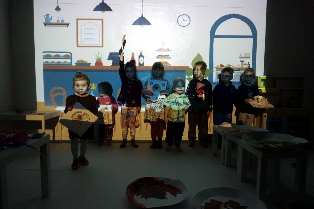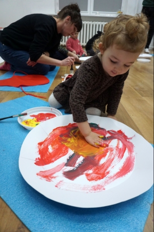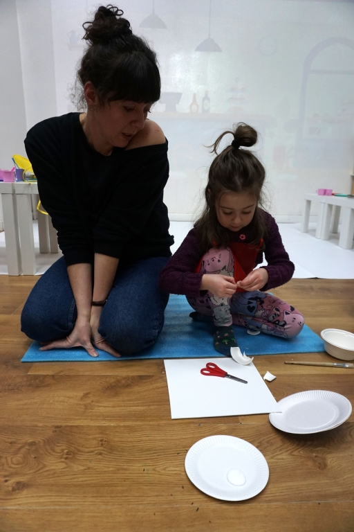Listopadowe SZTUKowanki rodzinne warsztaty dla najmłodszych pachniały warzywami, pesto, passatą pomidorową i ziołami. Dzieci najpierw bawiły się robiąc rodzicom hebratę, kawę i gotując "na niby". Nastepnie z jednorazowych talerzy i misek stworzyły zwierzęta, owady, kwiaty. Potem 'ugotowały" swoje potrawy z prawdziwych produktów, które mogły zjeść z rodzicami. Na koniec malowały obrazy/potrawy na dużych papierowych talerzach.