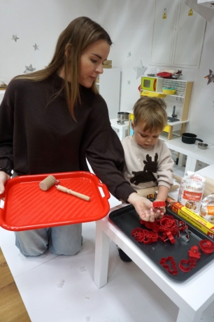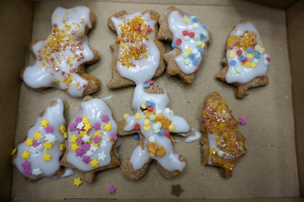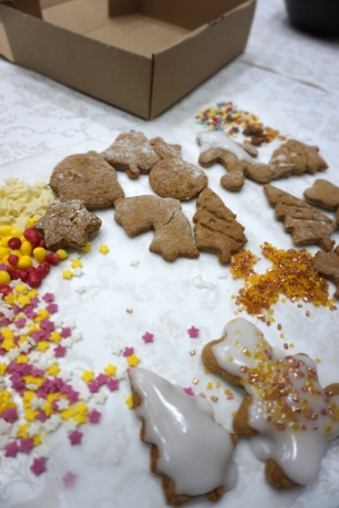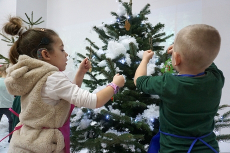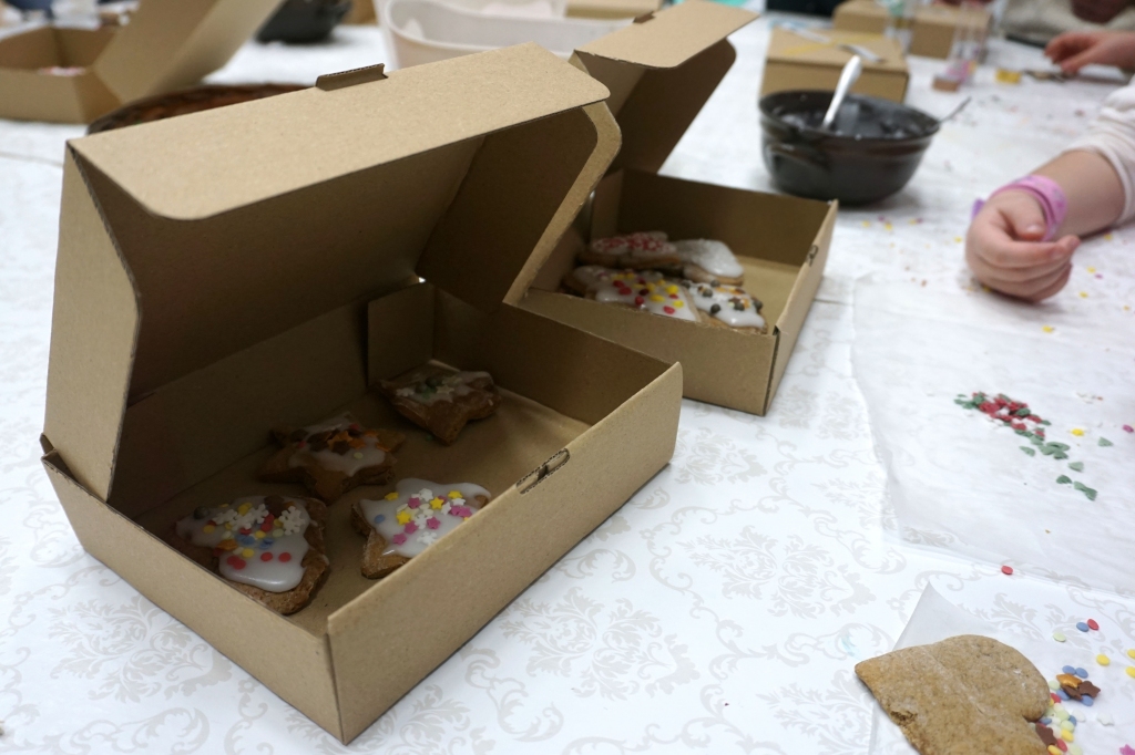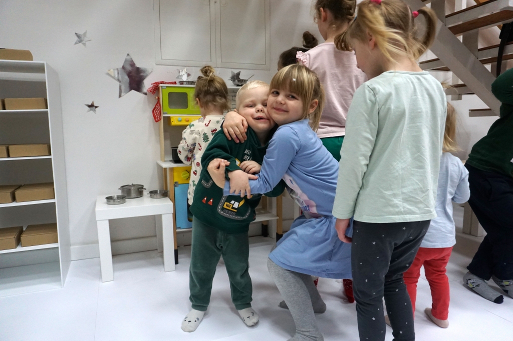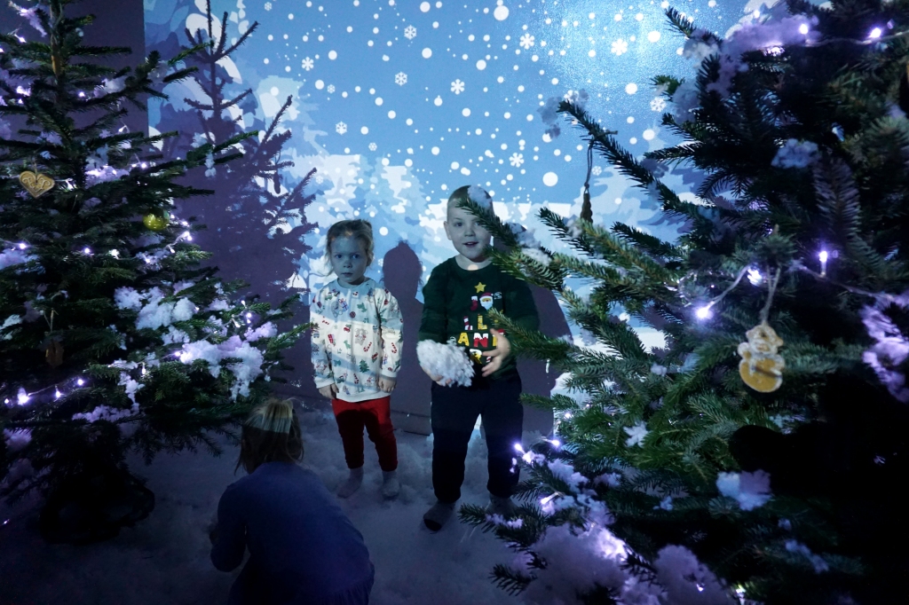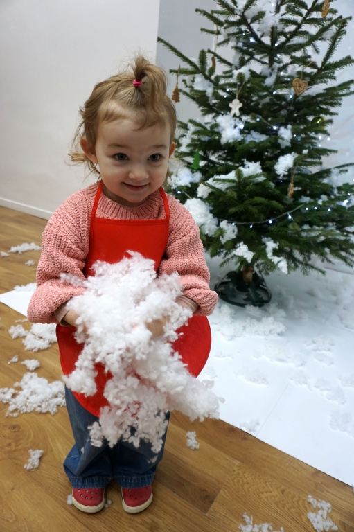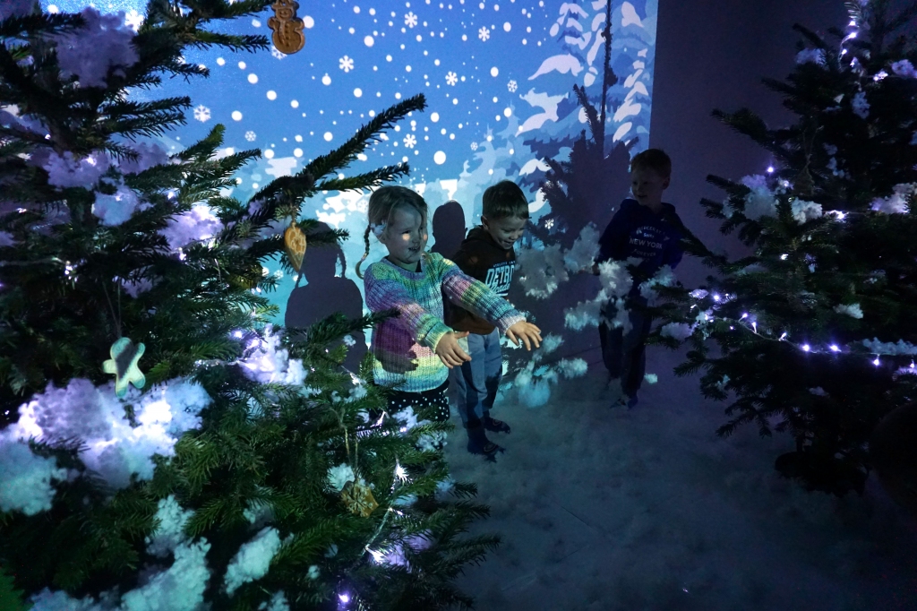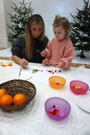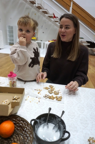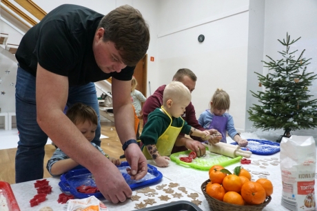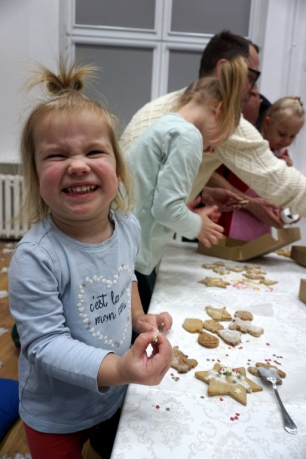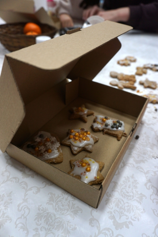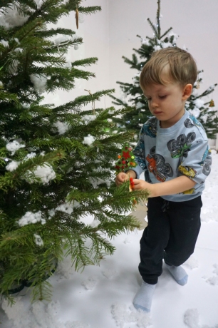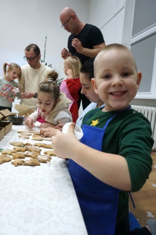 Dzieci bawiły się śniegiem z rodzicami w zimowej krainie z żywymi choinkami, następnie piekły i lukrowały pierniczki. W międzyczasie tworzyły zawieszki na choinkę. Dziękujemy za ten spokojny twórczy, rodzinny czas. Wesołych Świąt!