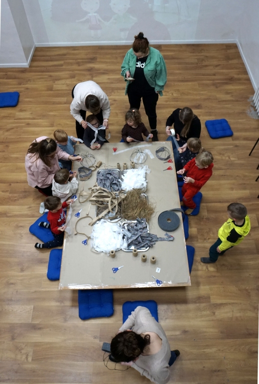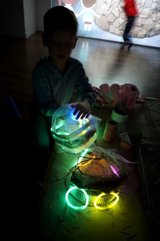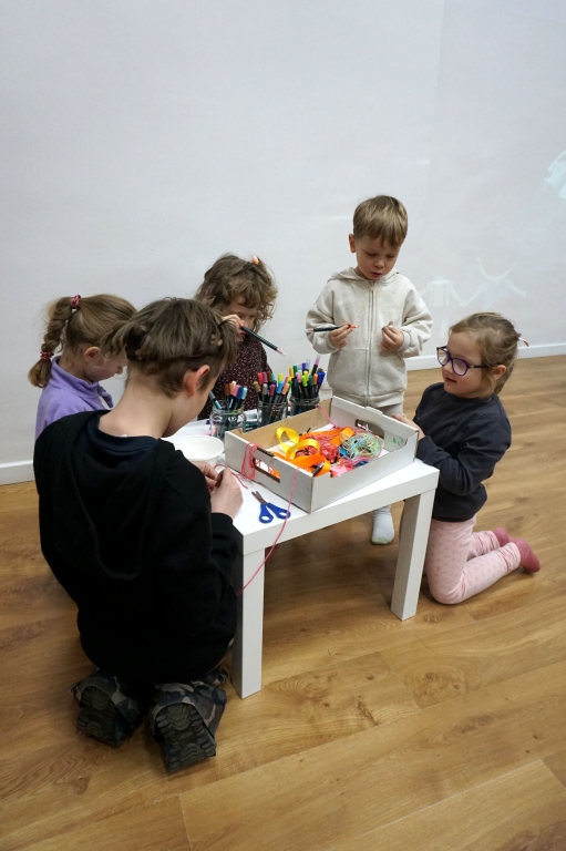 Podczas kolejnych warsztatów rodzinnych Twórcze cudaki dzieci poznały włoskiego artystę Mario Merza, który był jednym z ważniejszych przedstawicieli Sztuki biednej/arte povera w latach 60-tych XX w. Artysta od lat 60-tych tworzył symboliczne igloo wykorzystując różne proste materiały, często nawiązujące do miejsca wystaw i kontekstu społeczno-politycznego. Swoje igloo często przebijał neonami. Dzieci podczas zajęć również wykonały swoje igloo z watoliny, fliseliny, tektury i siana. Neony natomiast zastąpiły świecącymi patyczkami, które sprawiły uczestnikom najwięcej radości. Dziękujemy za kolejne twórcze spotkanie.