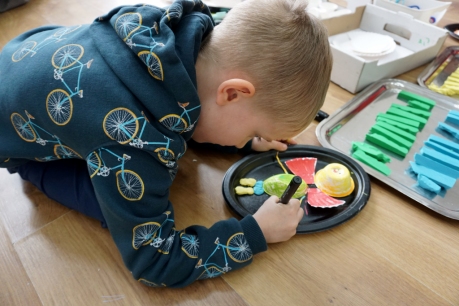 Kolejne SZTUKowanie odbyło się do wystawy SOLVE ET COAGULA Patrycji Orzechowskiej i Pawła Sobczaka. Dzieci zobaczyły wystawę inspirując się ceramikami artystki, stworzyły swoje płaskorzeźby z naczyń jednorazowych i plasteliny.